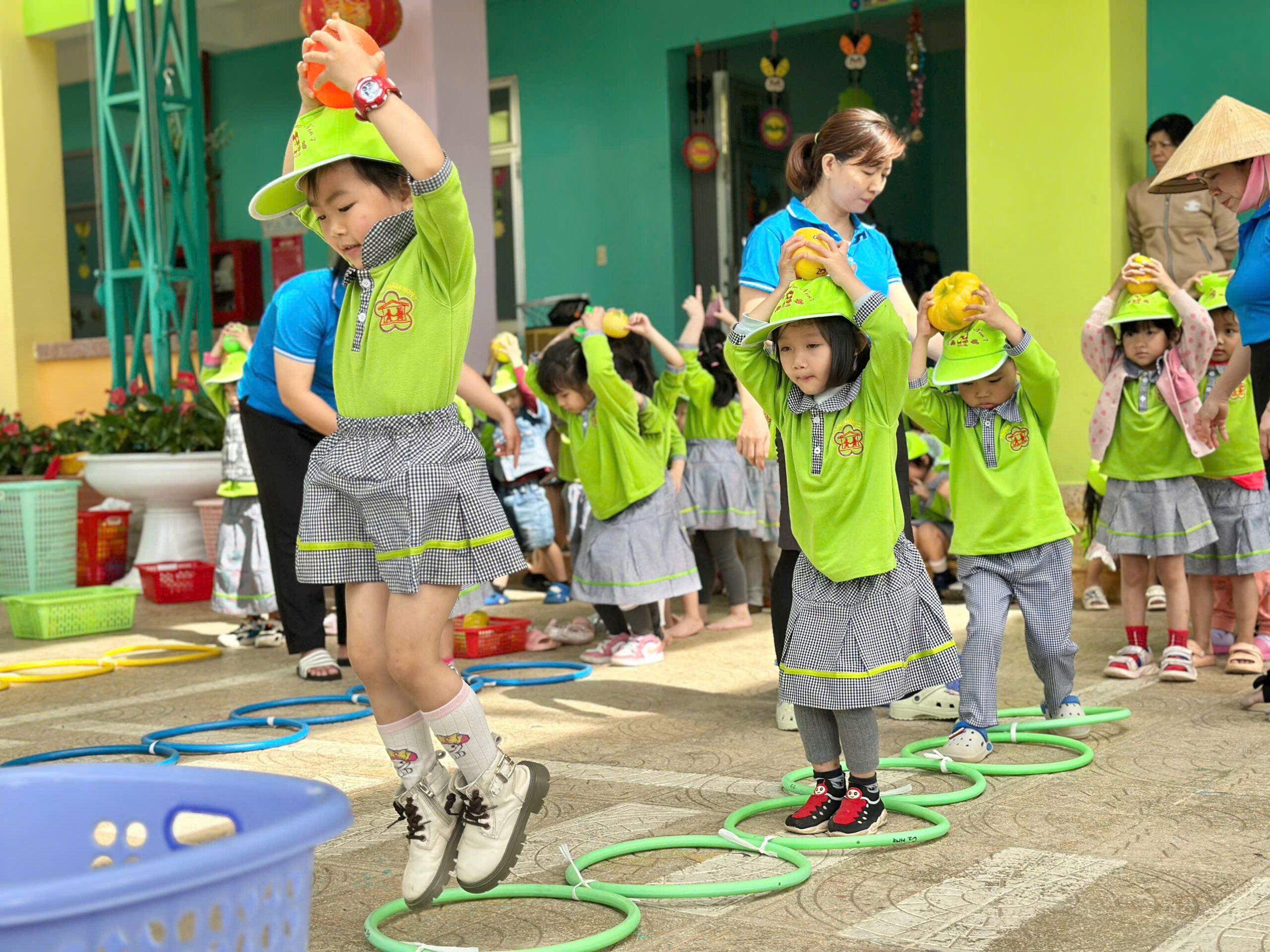 🏃♀️ Các bé không chỉ thể hiện tinh thần **đoàn kết, tự tin, nhanh nhẹn** mà còn rèn luyện được **thể lực, sự khéo léo và tinh thần fair-play** trong mỗi hoạt động. Tiếng reo hò cổ vũ của cô giáo và các bạn nhỏ đã tạo nên một không khí thật **vui tươi, ấm áp và tràn đầy năng lượng**.